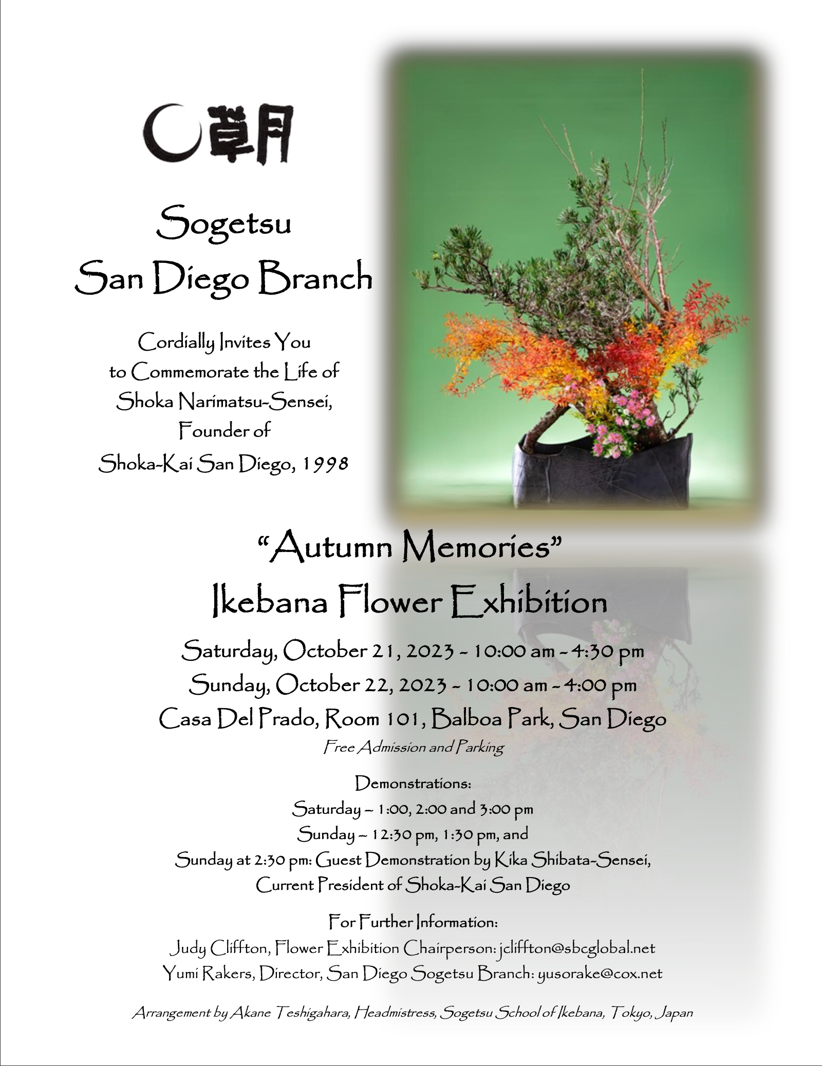 A community of Sogetsu ikebana teachers and students in the County of San Diego